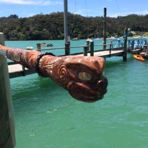 Tonight we’re anchored outside Matauwhi  Bay, near Russell. A short dinghy ride into Russell Boating Club led to the discovery of some pylon art, with a tiller showing a ‘race face’; maori style! This is a place steeped in history; the local church still has musket holes in the outside walls from battles fought in the 1800’s and the graveyard tells many stories from those, through to more recent times.